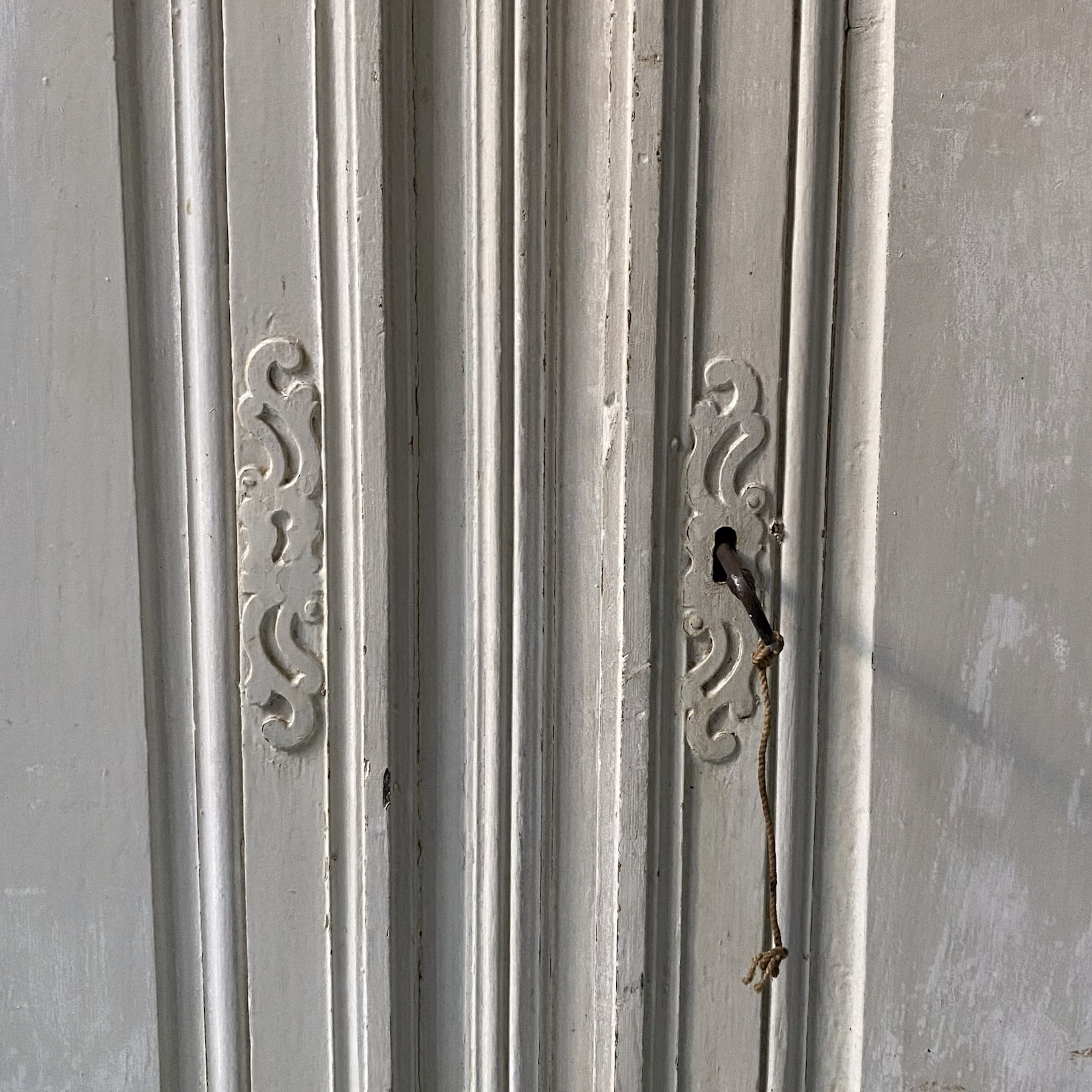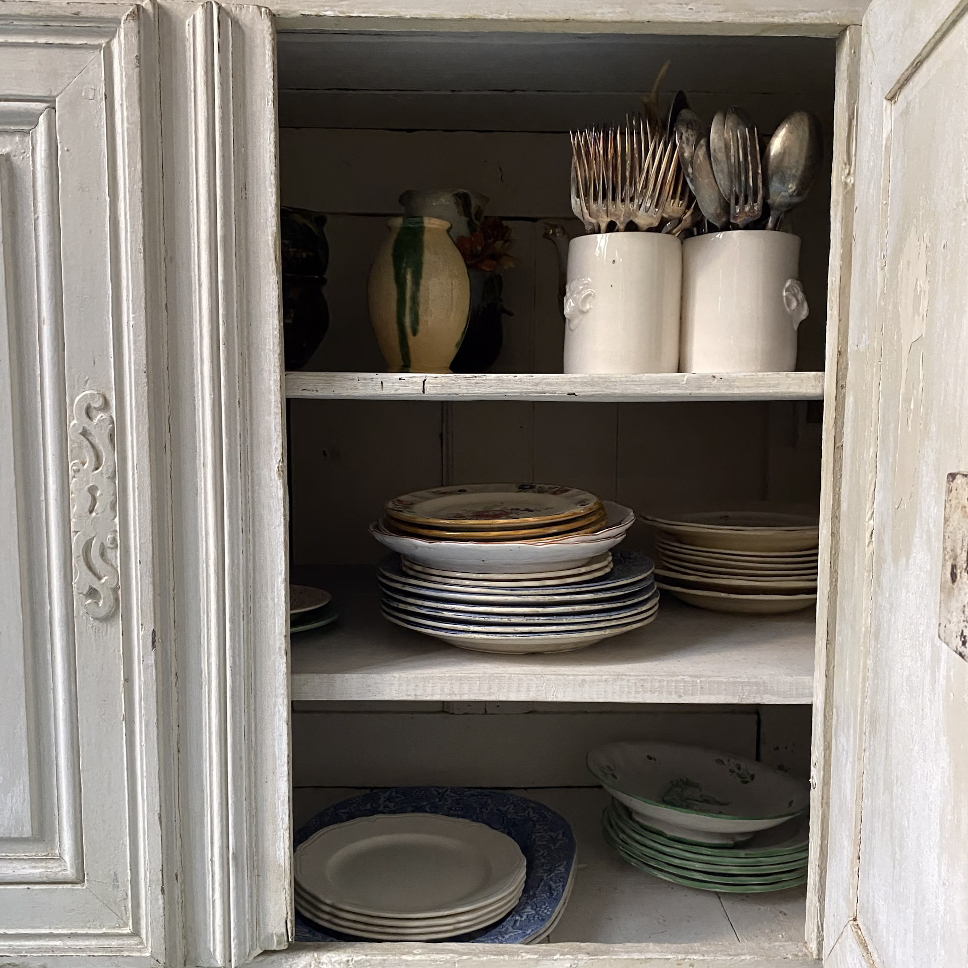 Buffet de chasse, credenza di epoca inizio 700. Serrature e lacca bianca originale. Piano sagomato.