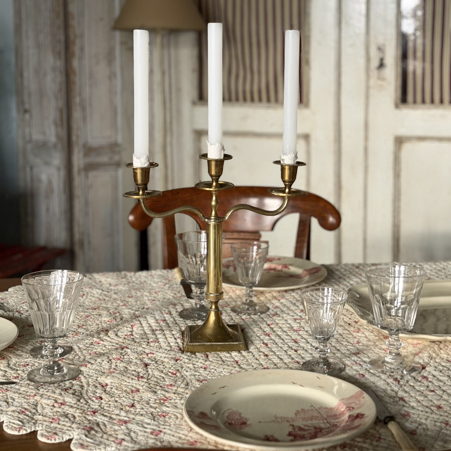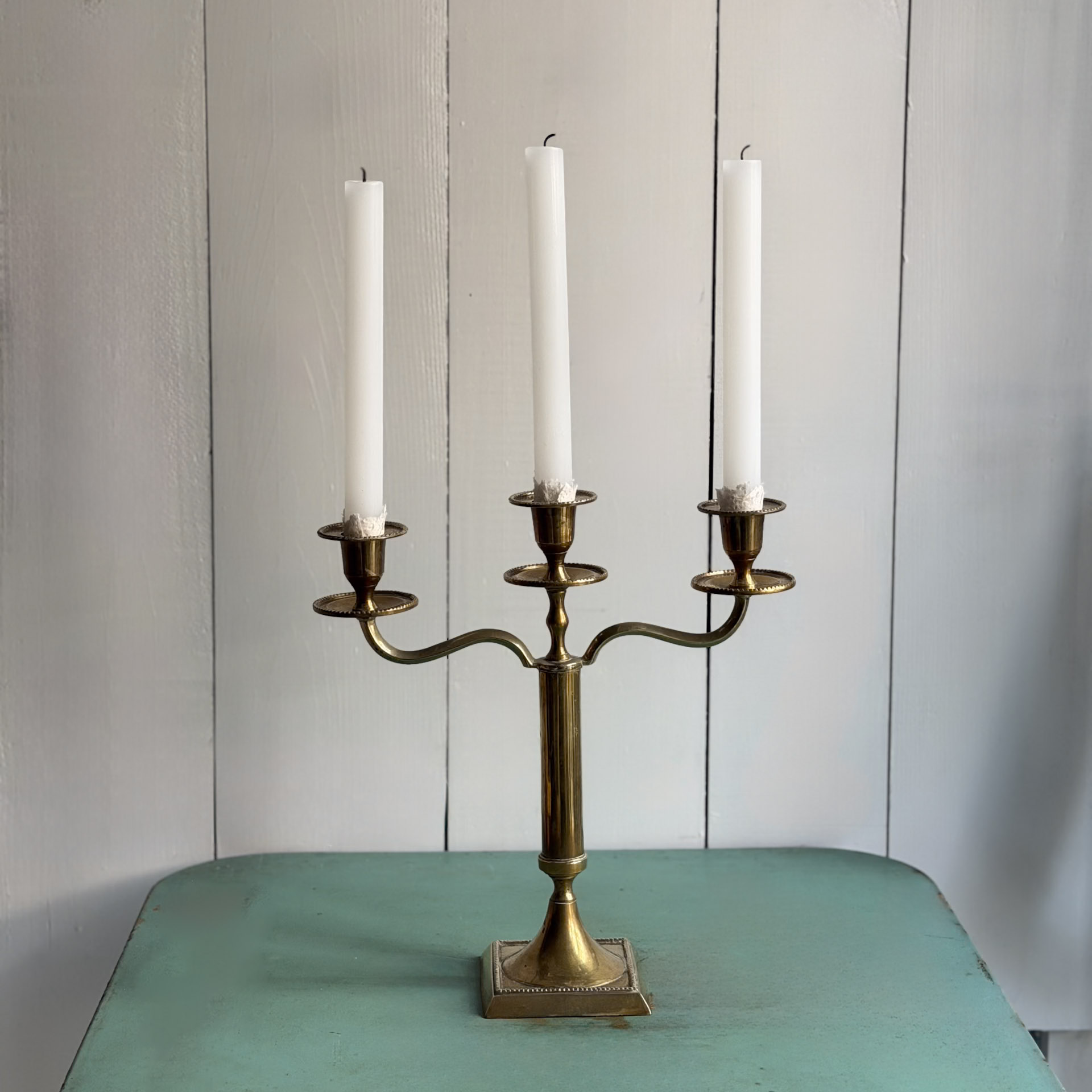 Coppia di candelieri, in ottone. Tre braccia.